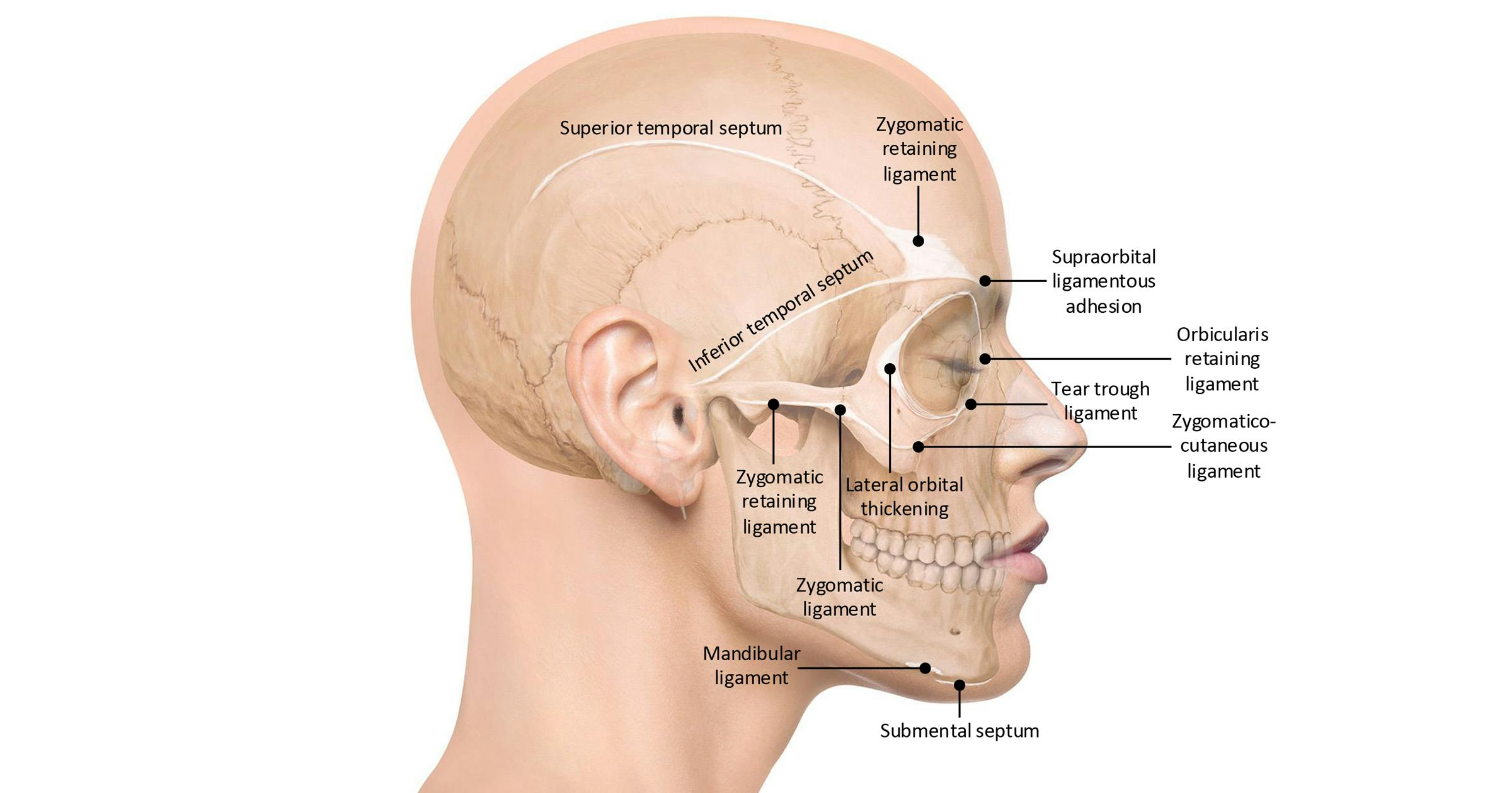 Figure 1: Overview of the most relevant facial ligaments