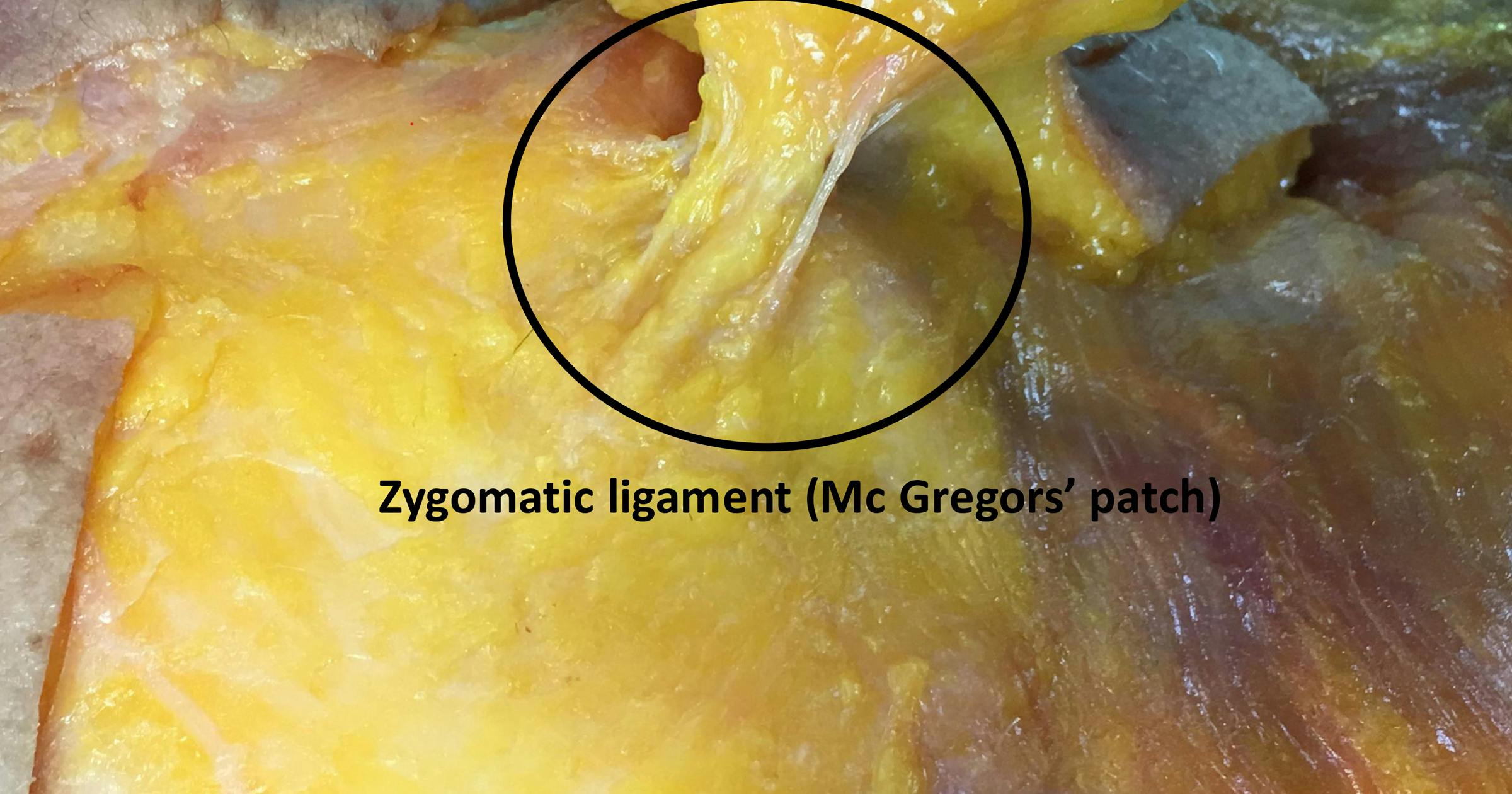 (Figure 2: Detailed image of the zygomatic ligament, when the SMAS is elevated)