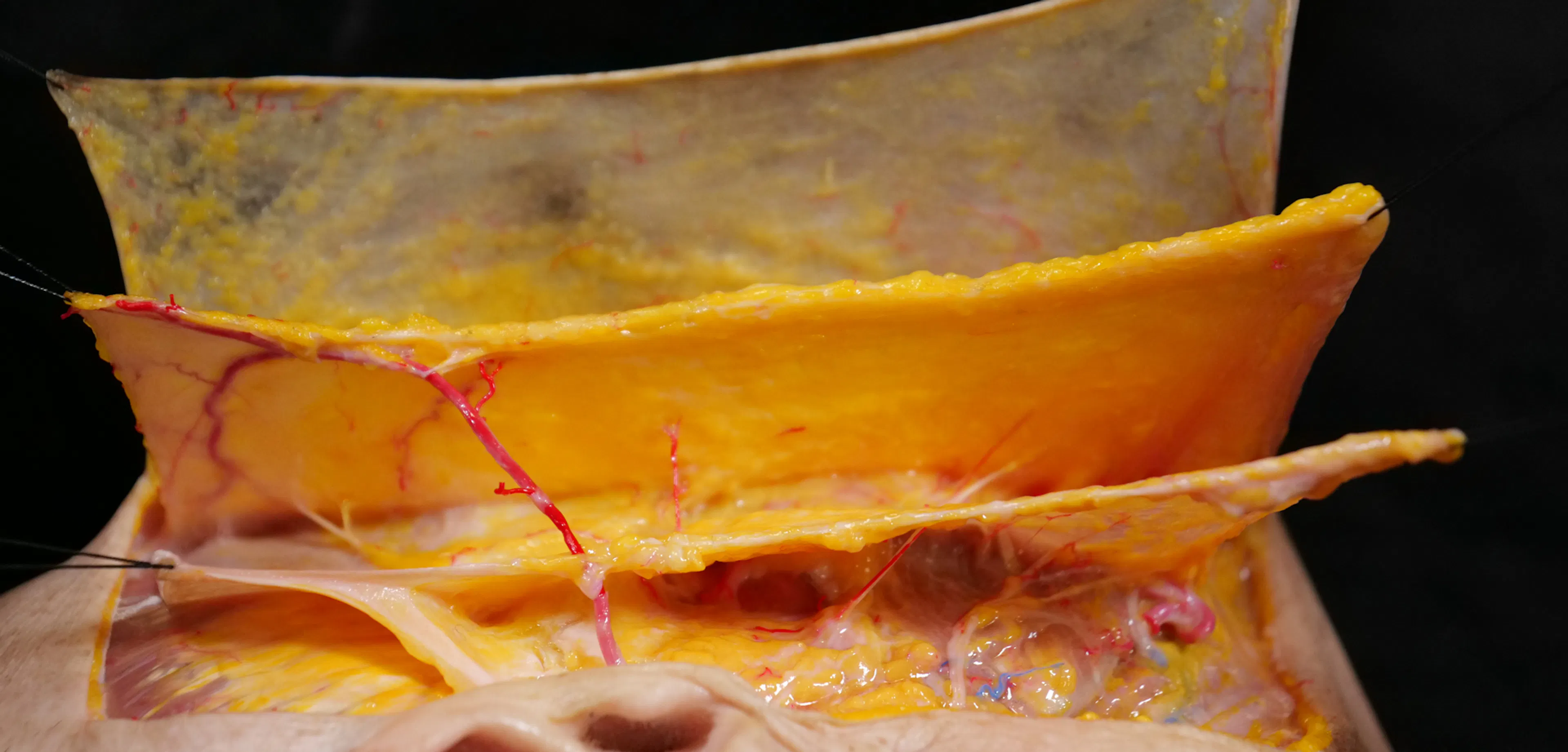 Identify key upper face anatomical structures, including muscles, vessels, and fat compartments, through 3D cadaver exploration.