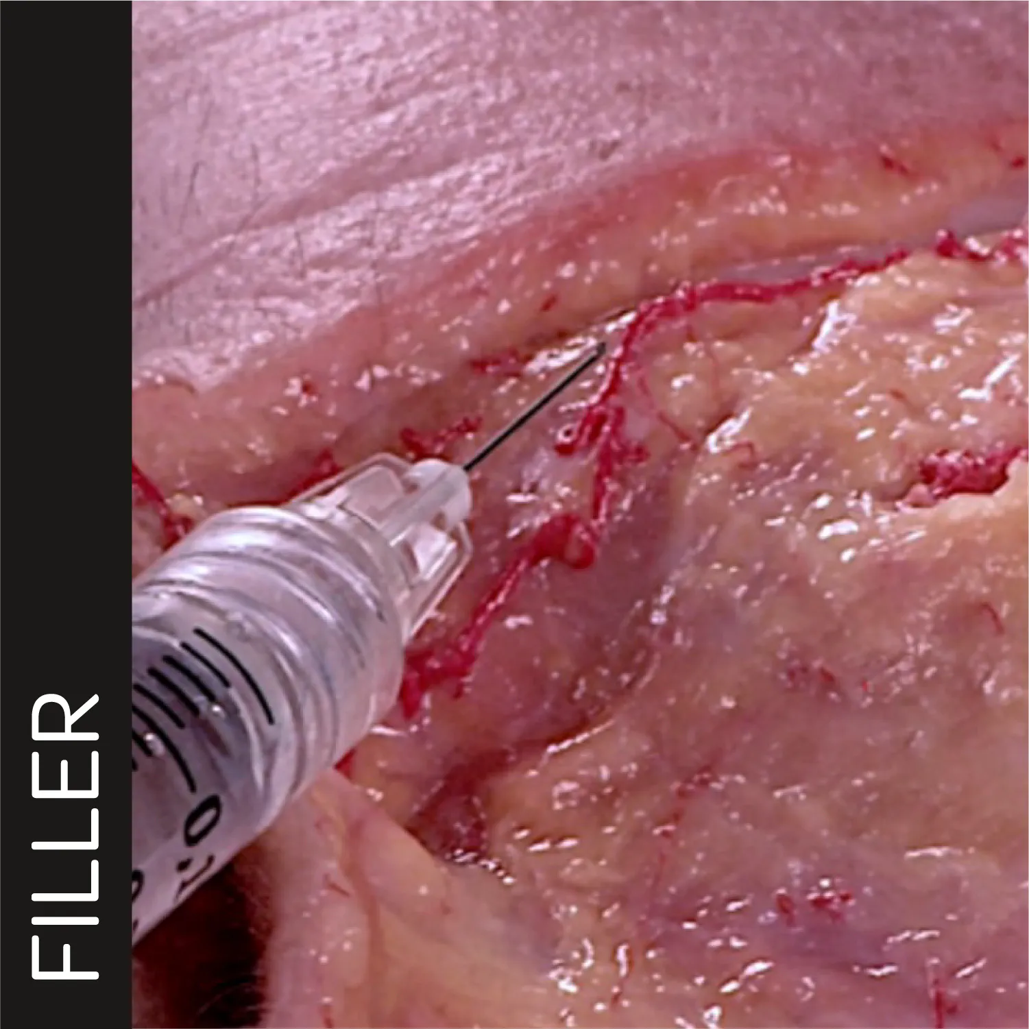 The gold standard for treating horizontal and vertical glabellar rhytids is the intramuscular injection of neuromodulators into the glabellar muscles. However, if the lines are so deep that a toxin treatment is not sufficient anymore to remove the rhytid a soft tissue filler treatment can be performed. In this video, the intradermal needle technique is demonstrated along with a thorough review of the underlying vascular anatomy. This high-risk technique should be only performed by expert injectors due to high-risk profile.